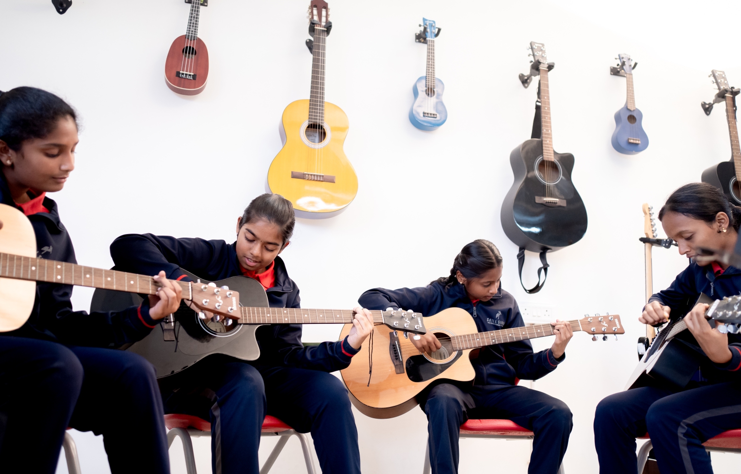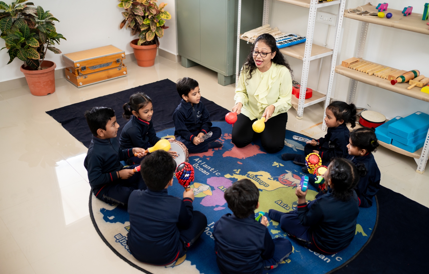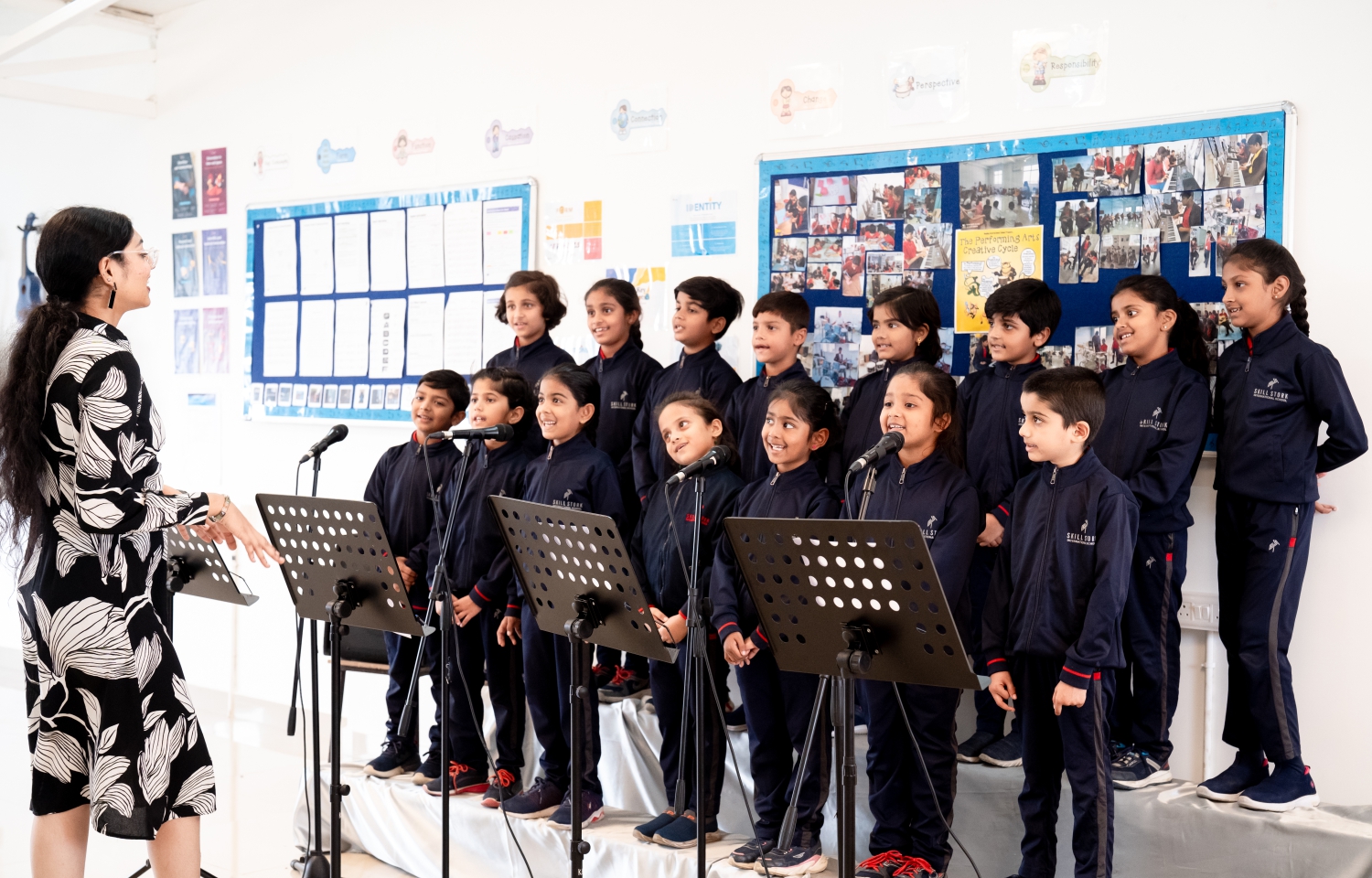 Skill Stork International School offers excellent infrastructure and resources to support the music syllabus. Facilities include dedicated areas for percussion and melody instruments, a professional mic system for choir singing, and a wide range of instruments such as guitars, ukuleles, drums, cajons, keyboards, a piano, and early years percussion like shakers, maracas, and xylophones. This setup ensures students have the tools to explore and excel in music.